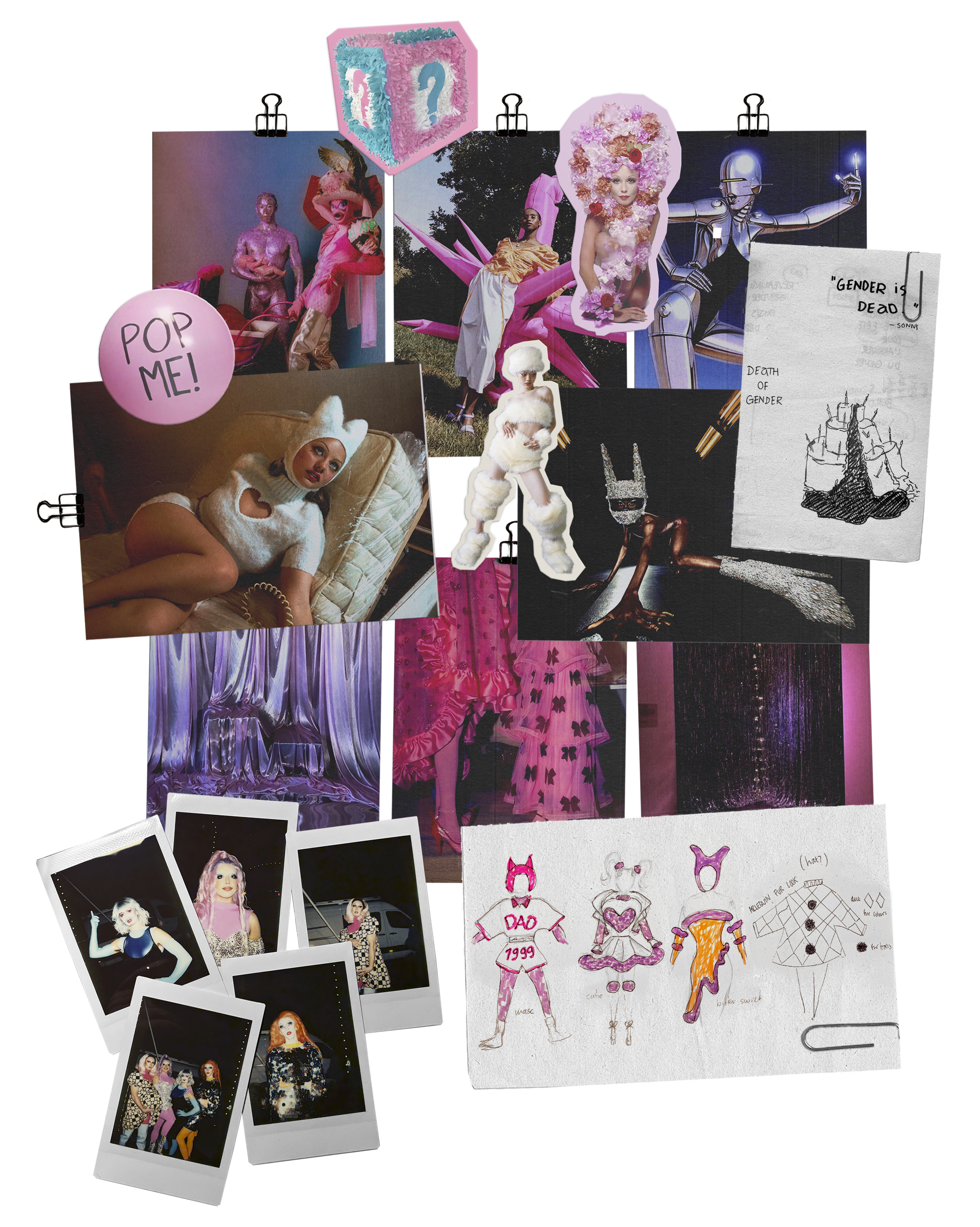 En somme, La Gender Reveal Party est un espace d’opportunité et une célébration des multiplicités. Une ode au maximalisme. Une fête exutoire pour faire face aux complexités qui nous entourent et nous habitent. Un endroit pour que les frictions esthétiques se révèlent et que les fragments des créatures en nous s’autorisent. Éprouvons la beauté du surplus ! Que le cirque et le drag s’embrassent et que le rétrofuturisme, le disco et le kitsch fassent une orgie illimitée et accouchent d’un ultime avorton : La Gender Reveal Party !